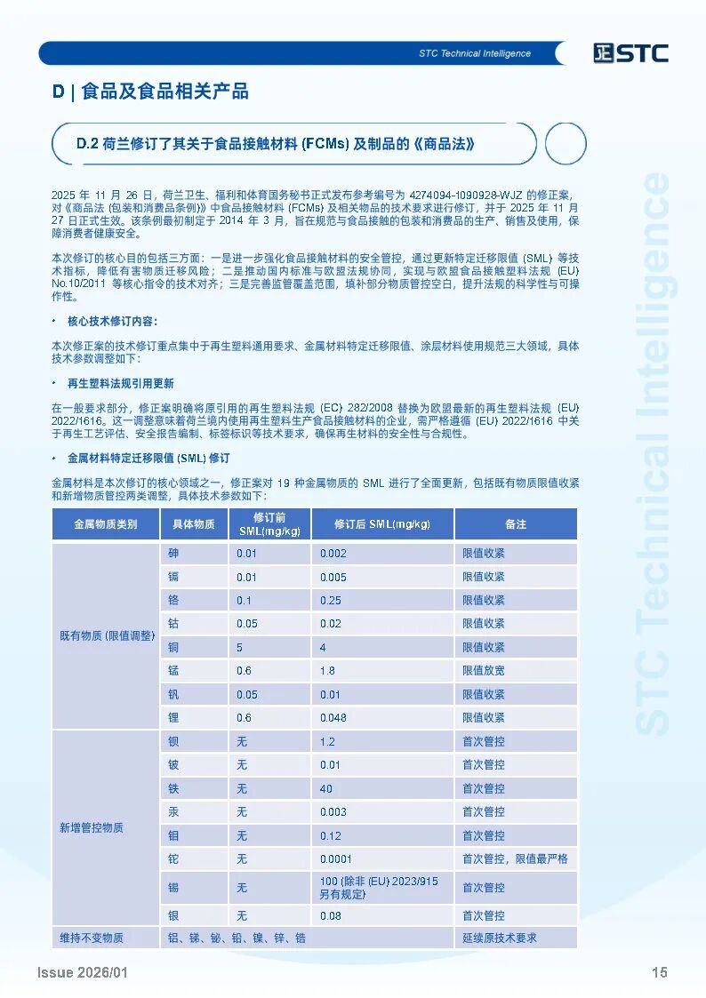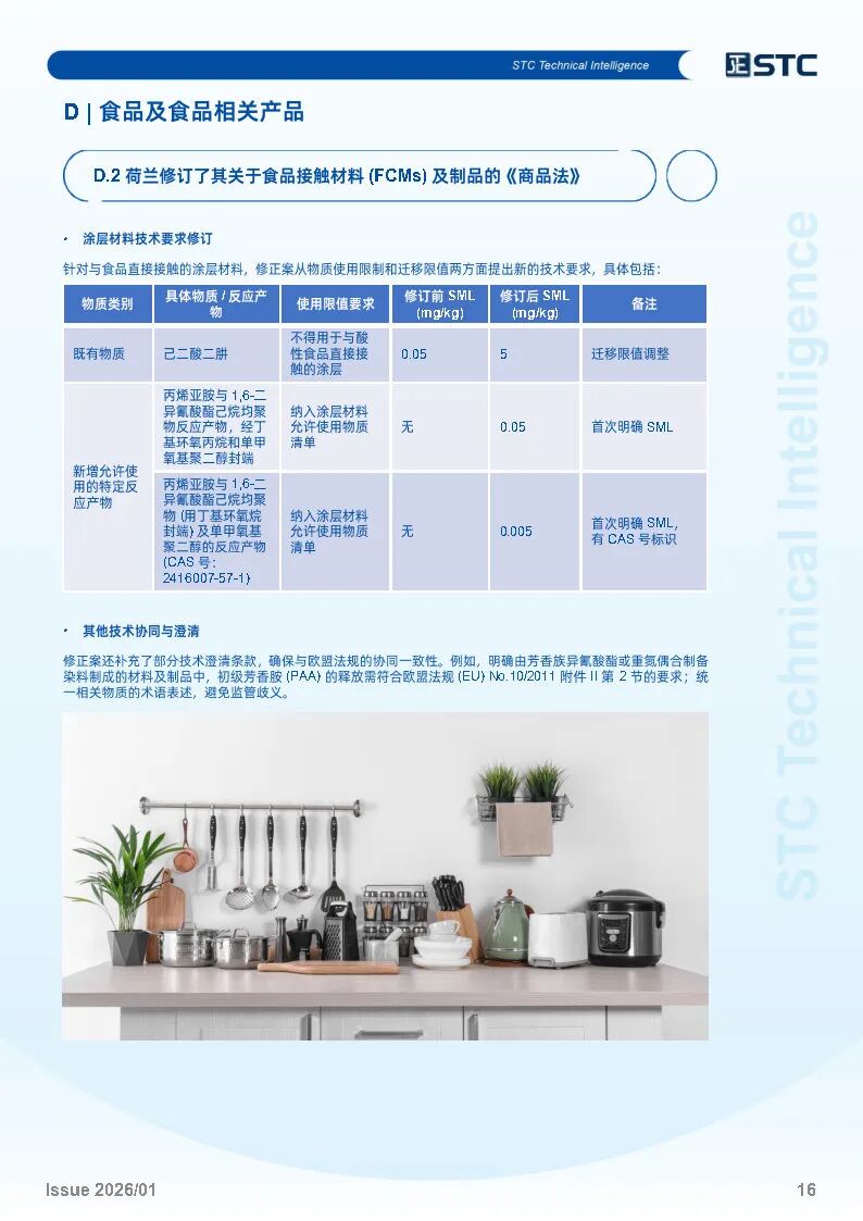 荷兰修订了其关于食品接触材料 (FCMs)及制品的《商品法》