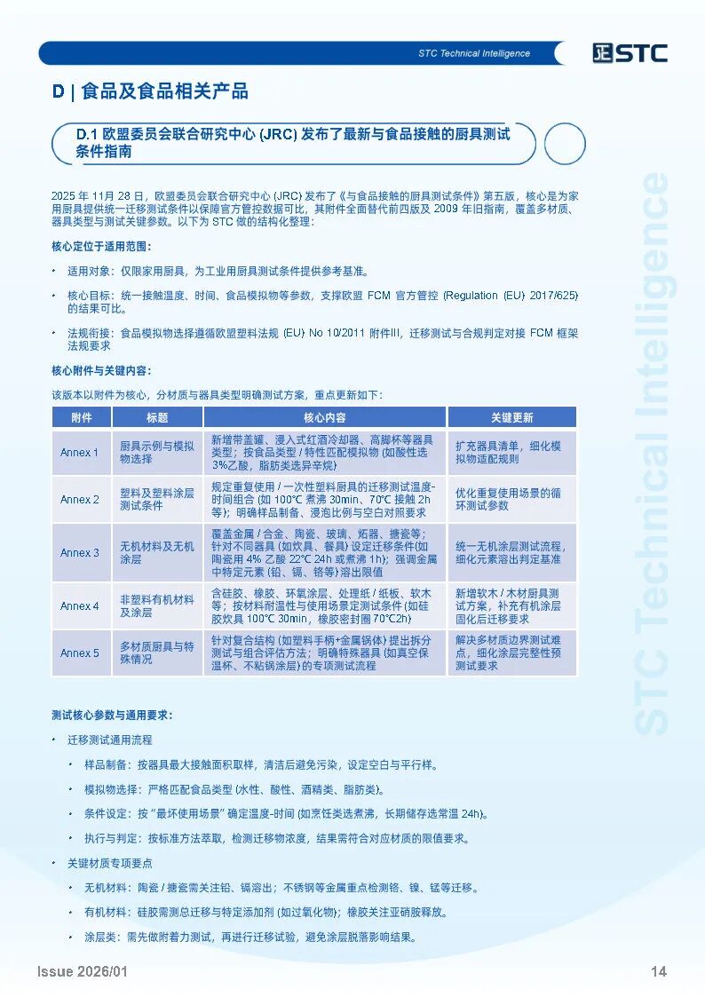 欧盟委员会联合研究中心 (JRC) 发布了最新与食品接触的厨具测试条件指南