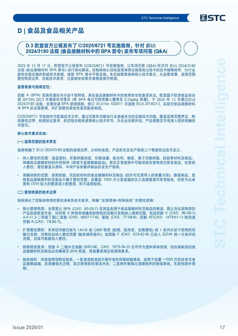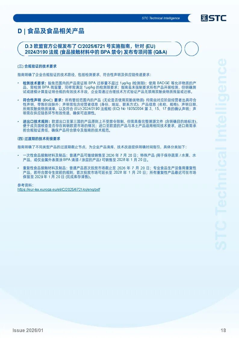 欧盟官方公报发布了 C/2025/6721 号实施指南,针对 (EU) 2024/3190 法规 (食品接触材料中的BPA禁令) 发布专项问答 (Q&A)