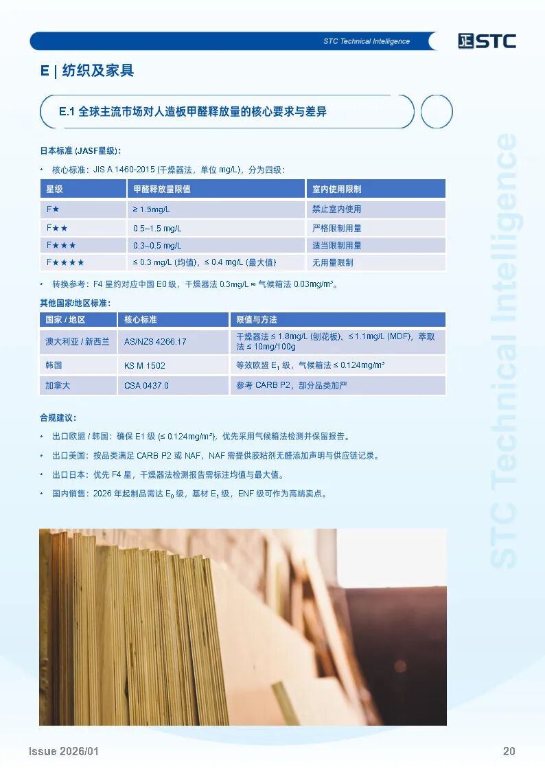 全球主流市场对人造板甲醛释放量的核心要求与差异