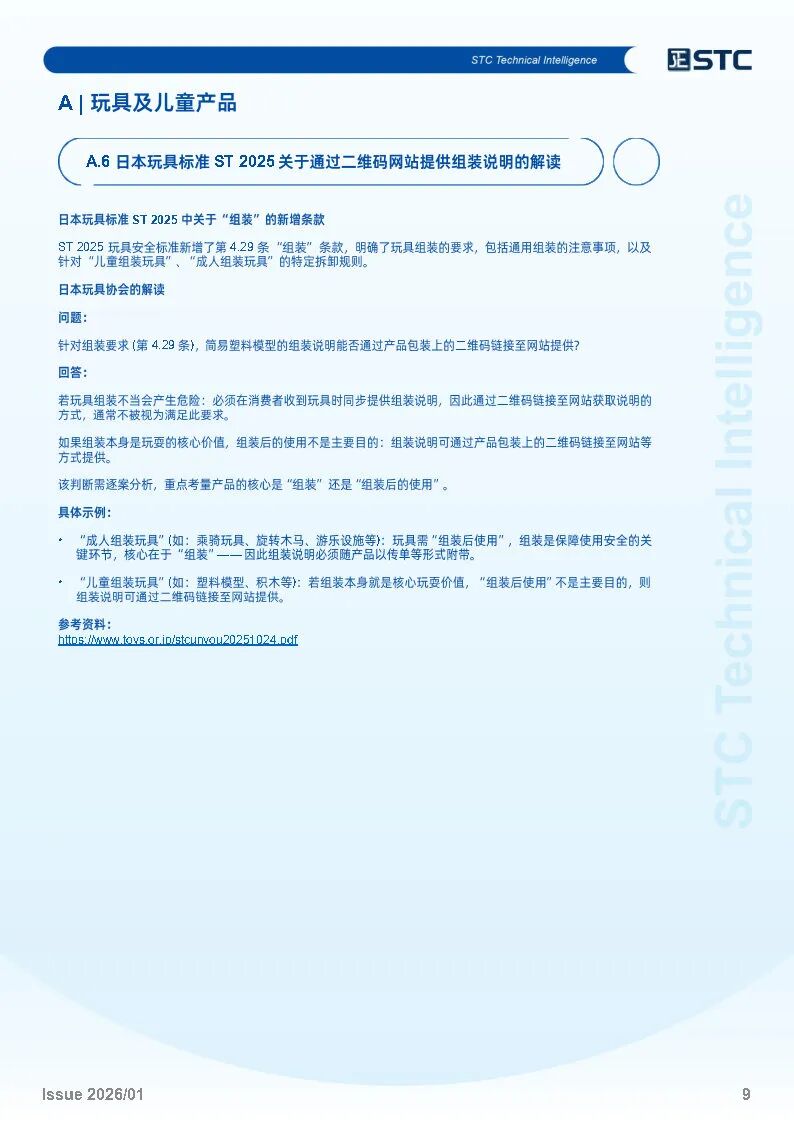 日本玩具标准 ST 2025 关于通过二维码网站提供组装说明的解读
